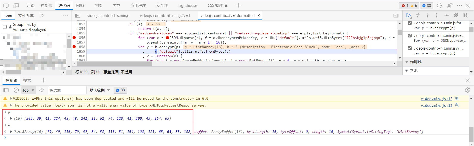 从代码输出中可以证明,p 确实为加密后的密钥,而 y 则为解密后的视频密钥。