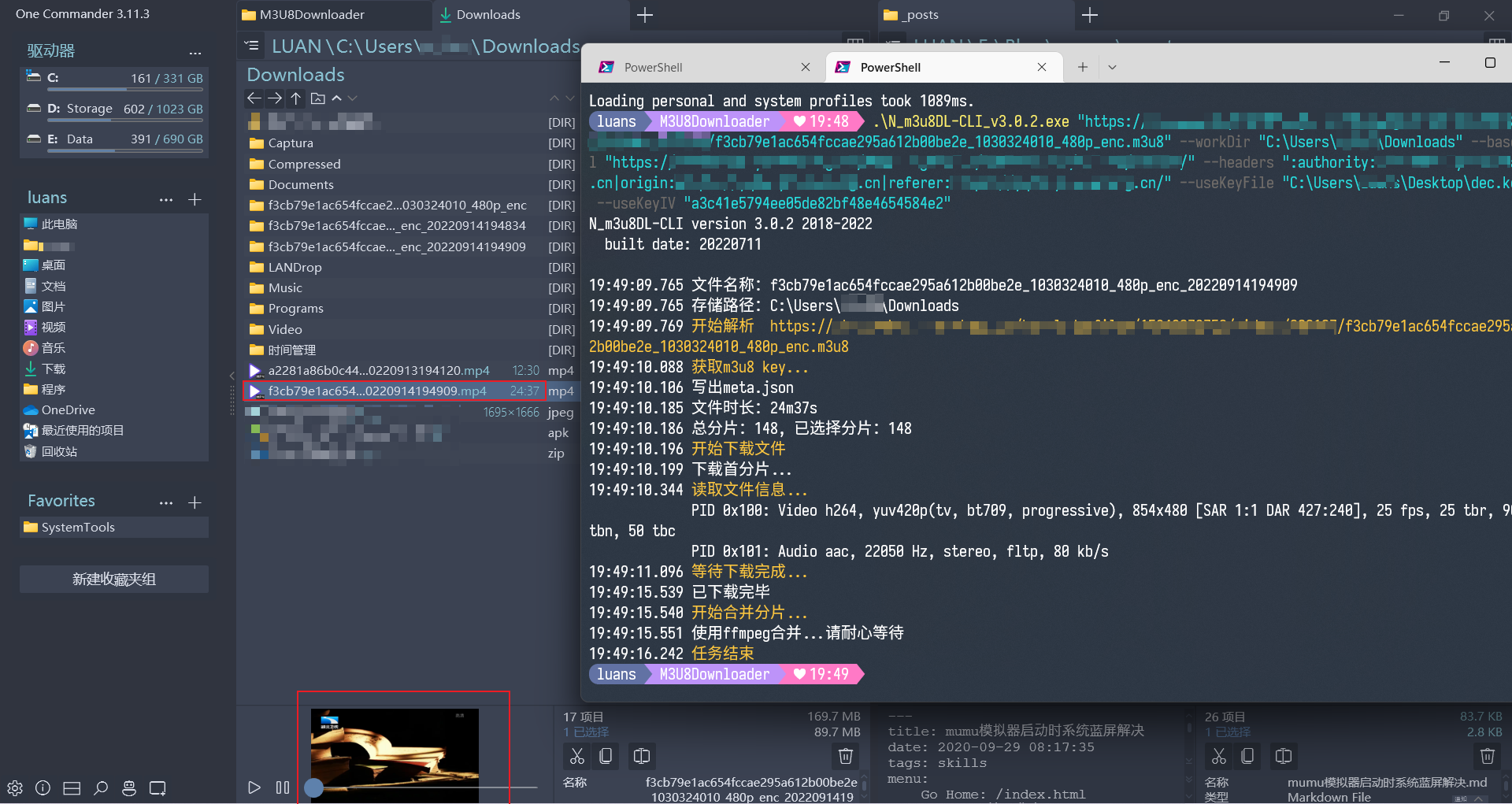 1 | .\N_m3u8DL-CLI_v3.0.2.exe "https://***/f3cb79e1ac654fccae295a612b00be2e_1030324010_480p_enc.m3u8" --workDir "C:\Users\***\Downloads" --baseUrl "https://***/" --headers ":authority:***|origin:***|referer:***/" --useKeyFile "C:\Users\***\Desktop\dec.key" --useKeyIV "a3c41e5794ee05de82bf48e4654584e2" |