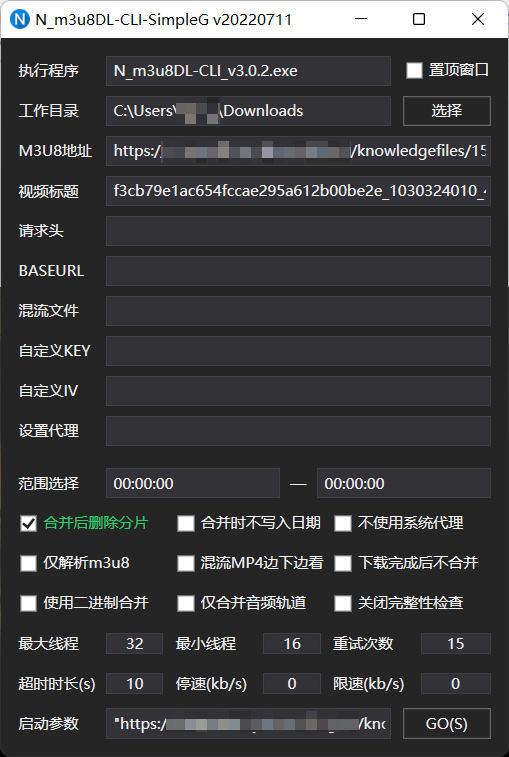 以N_m3u8DL_CLI为例,添加命令行参数: