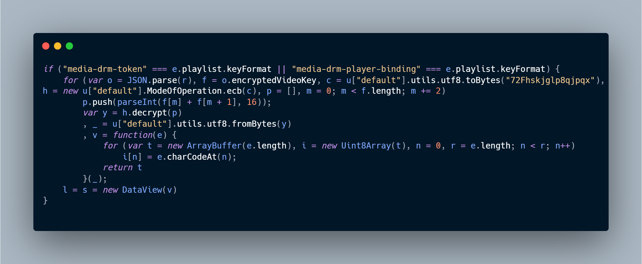 1 | if ("media-drm-token" === e.playlist.keyFormat || "media-drm-player-binding" === e.playlist.keyFormat) { |